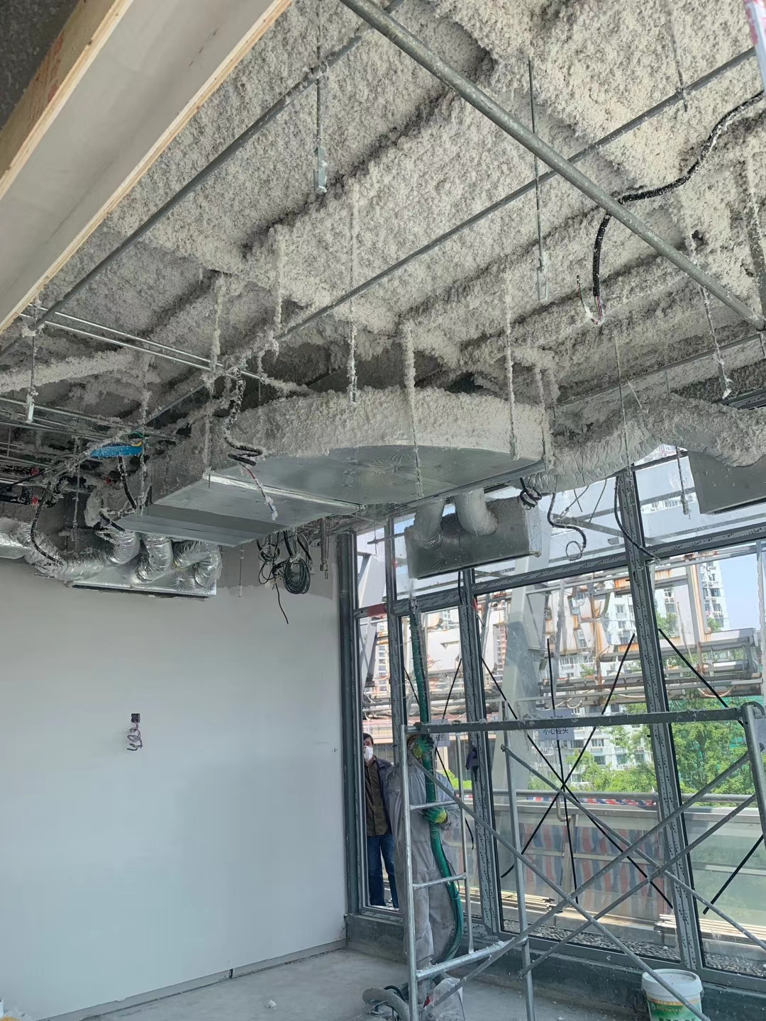 办公大楼顶部超细无机纤维保温喷涂